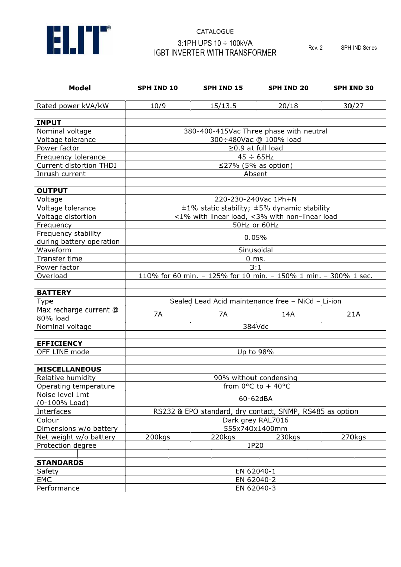 The SPH IND series represents the latest in transformer-based double conversion (VFI) power protection technology, specifically designed to safeguard a wide range of critical applications, including server rooms, networks, telecommunications systems, industrial processes, and medical equipment. This cutting-edge UPS solution offers unmatched reliability, exceptional electrical performance, a remarkably compact design, and outstanding cost-efficiency—all housed within an elegant and functional enclosure.
